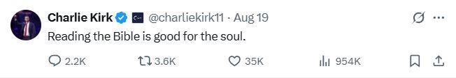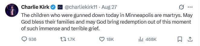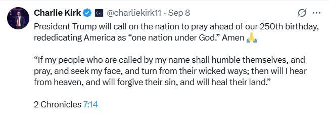 Rather than distort his words, I want to share them. I’ve compiled some of Charlie’s own posts from X — every single one from the last 30 days of his life — to show people the real Charlie Kirk: a father, a Christian, a mainstream conservative, and, above all, a fundamentally good man.