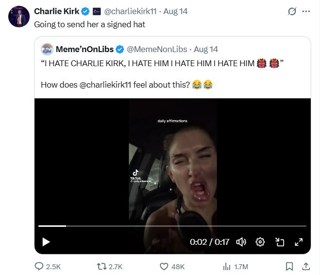 As you read these quotes, ask yourself: Who would you rather see shaping the future of this country — people like Charlie Kirk or people like those who celebrated his murder? And keep in mind, as you read, that many on the Left genuinely believe these ordinary, mainstream views are things you literally deserve to die for expressing.