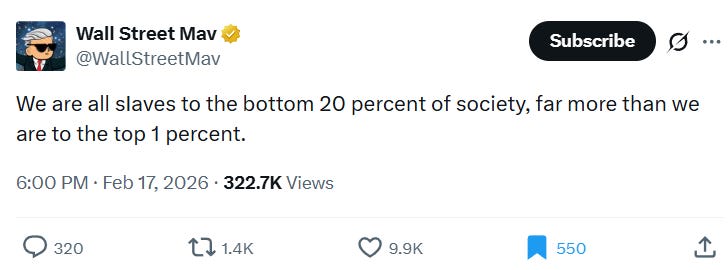 Not the rich. Not the middle class. Not the taxpayers. Not the forgotten majority that makes our country work.