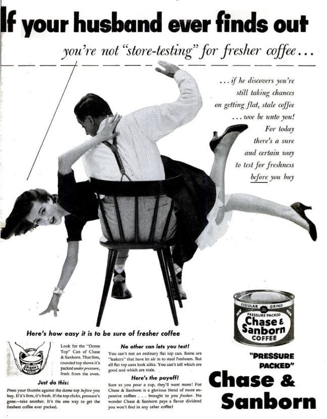 So, should companies be running ads like this to reach male consumers like me? Probably not because although I like them, it’s quite understandable that women might not like the idea that it’s okay to spank them for getting stale coffee, that they need to get down on their knees and serve their husband like a slave or that it’s normal for the men to play battleship while the women are relegated to washing dishes.