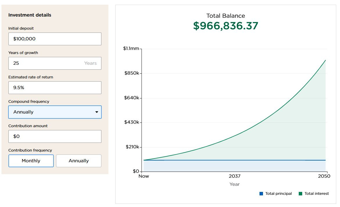 Over the last decade, adjusted for inflation, the stock market has given a 9.5% return. Let’s say you just worked a second job for a decade and earned 100k, which is extremely doable over that time period, even if you’re not working 80 hours per week. In 25 years, that would turn into almost a million dollars: