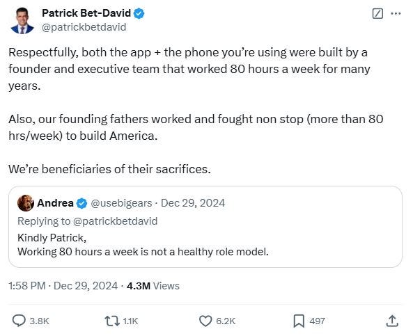 During the course of an argument over H1-B visas on X, a debate opened up about working 80 hours per week. Most people seemed to think working that much was borderline crazy. Others thought it was practically a necessity for high achievers: