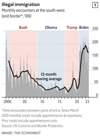 Yeah, this is what I've been seeing and talking about for some time. For many people I talk to, it's become too uncomfortable for them to face; they don't want to acknowledge that so many of their friends, neighbors, and family are either enthusiastically or ignorantly part of the wrecking crew. So they don't read or investigate, they simply swallow what the state run media serves them. Talk about the problems of illegal immigration, and I'm "racist" or xenophobic or a dreaded right wing MAGA extremist spreading the "debunked" replacement theory. We are on the Titanic, and senile Cap'n Joe says; "damn the icicles..., wait... those big, floating pieces of ice..., umm, anyways Full Speed Ahead!; I've got this, everything's under control, America!