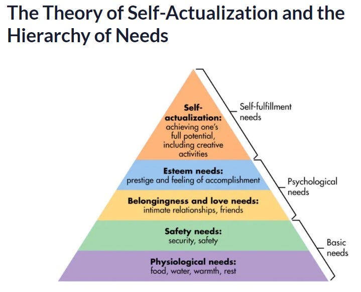 If you’re not familiar with self-actualization, it’s a concept made famous by Abraham Maslow. At some point in your life, you have probably seen this hierarchy of needs pyramid before: