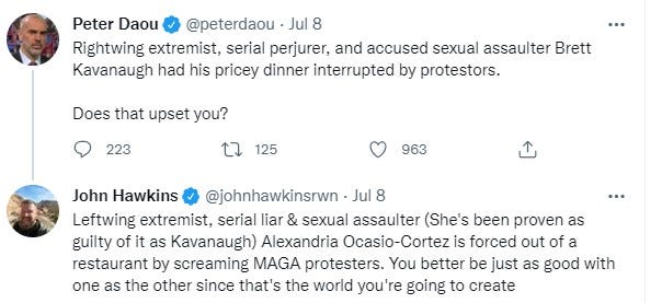 People like AOC have every confidence that they won't be treated the way they advocate and encourage treating people they don't like, because they know those they hate are generally not going to resort to striking back in the same way. They are bullies. The only thing that stops a bully is when their targets stand up to them. I have nothing but respect for Kyle Rittenhouse.