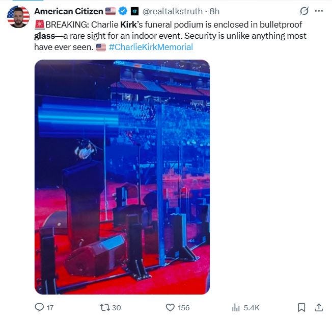 Even at the service, which had extensive Secret Service protection, there was such a risk of liberal violence that everyone had to stand behind bulletproof glass: