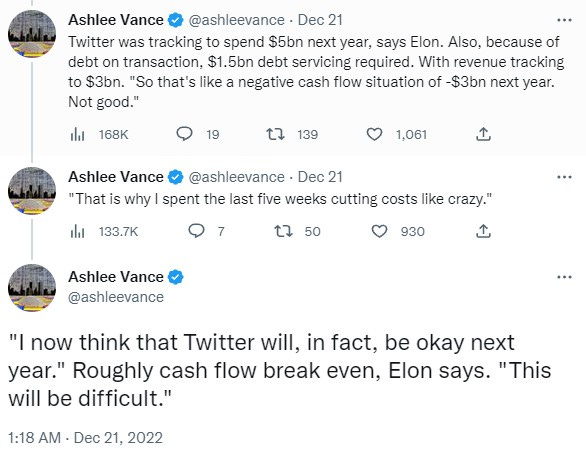14) How does Twitter fare under Elon Musk? Twitter had lost money for 8 of the 10 years before Elon Musk bought the company and his commitment to free speech has earned him a lot of enemies on the Left. However, according to Musk, the platform is already on track to break even next year: