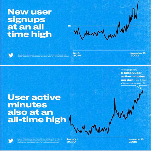So far, under Musk, Twitter has been rapidly gaining new users: