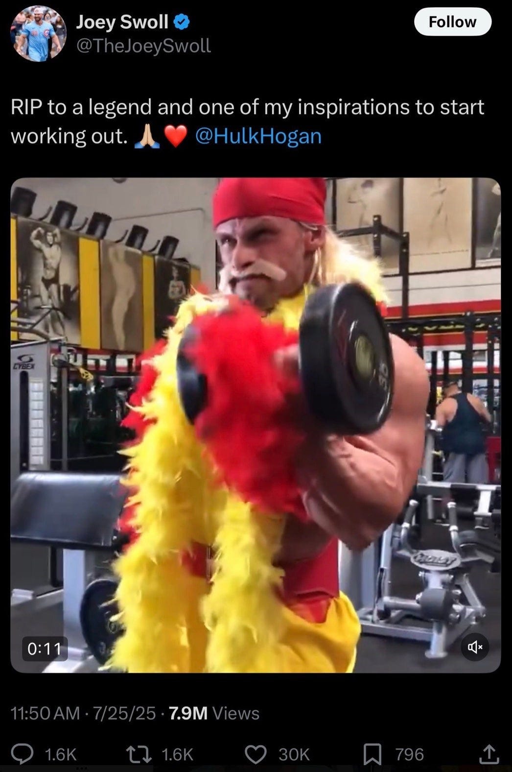 It started after Hulk Hogan died and Joey Swoll reposted an old video. He said some very basic, nice things about Hulk Hogan:
