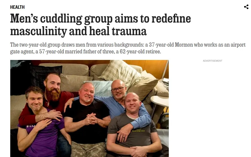 First of all, you may be wondering why I keep explicitly talking about masculinity. Well, as we’ve noted here before, there’s a never-ending push on the Left to redefine masculinity as gay and feminine. There are lots of examples we could give, but here are a couple of images that give you the gist of how the Left has dealt with masculinity for decades now: