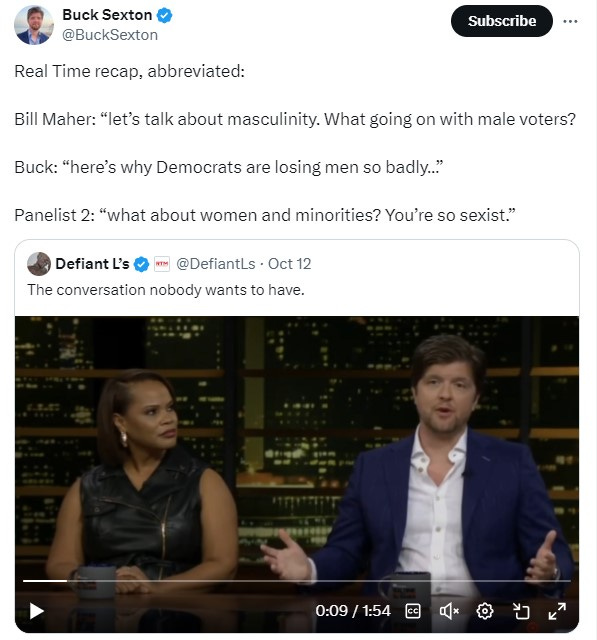 “This gender gap issue is real. It's a real problem, and you see the Democrats reacting to it. And I think what they are now finally… coming to realize is that a lot of men think Democrats care more about dudes who want to become women than dudes who just want to be dudes."