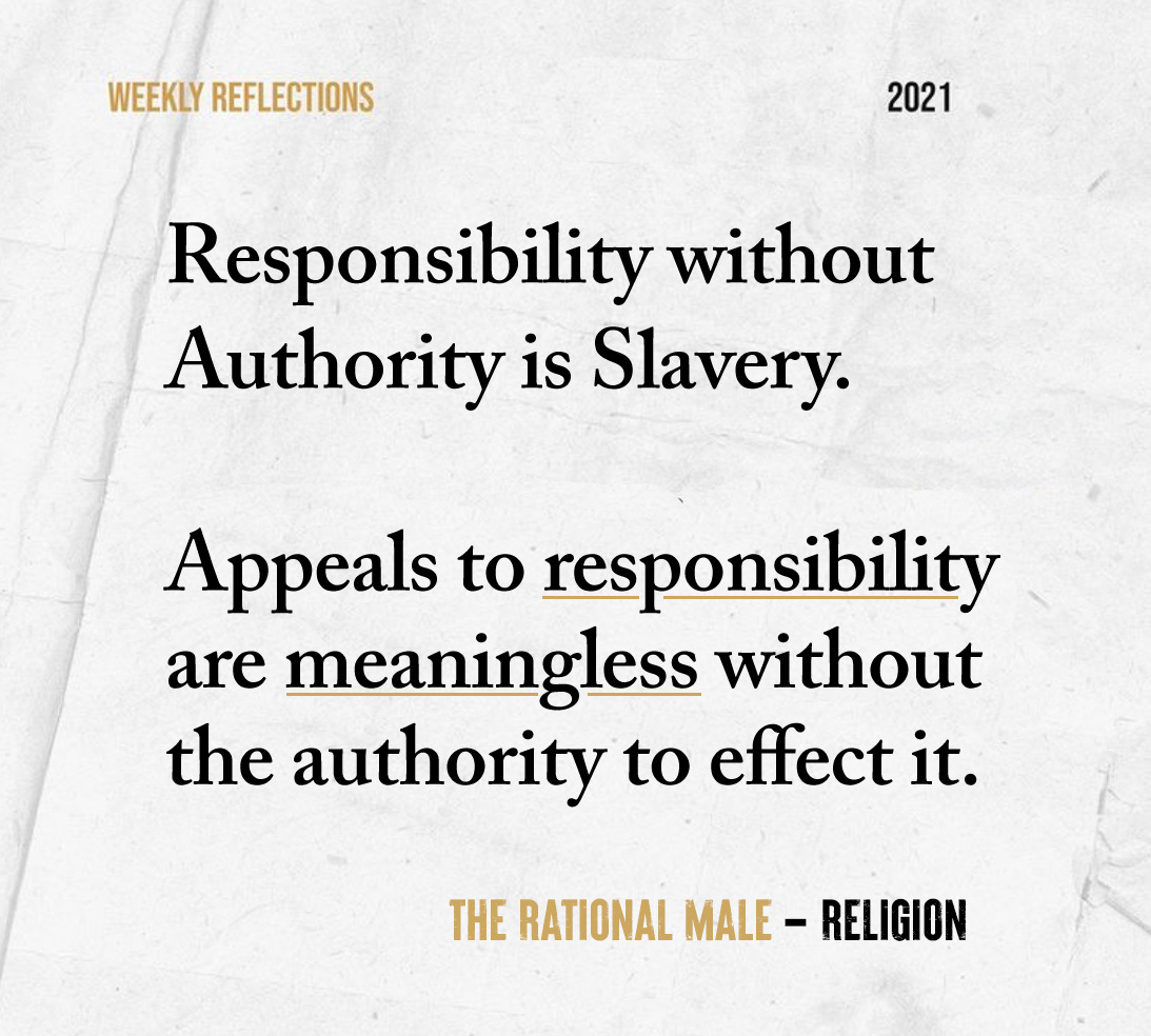 The general idea you get from them is they’d like all the straight, white masculine men to disappear, you know, except when they need some work done, taxes paid, or wars won. They certainly have all sorts of responsibilities that they think these men should have, but there’s no authority, appreciation, or even fair play that they believe should be given to the men who do it. That reminds me of a quote: