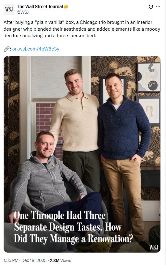How many people even know someone in a throuple, much less a successful throuple? On the other hand, open marriages are more common: