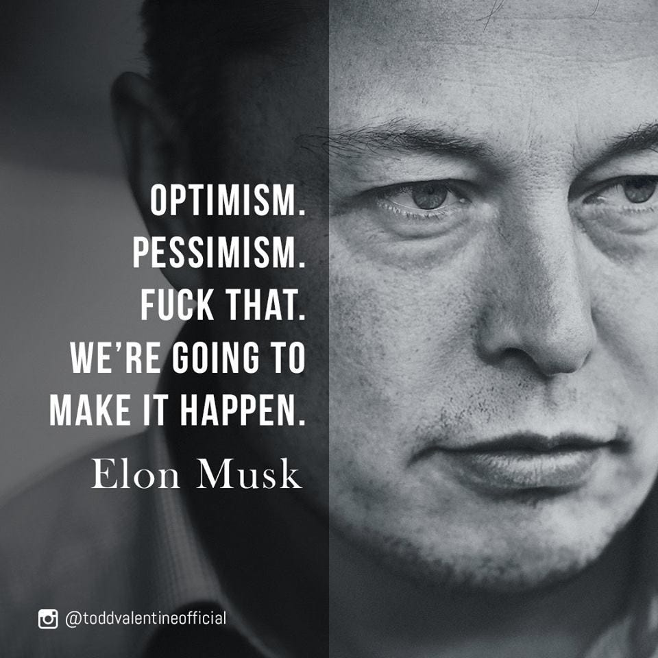 Still, to have that attitude, you need to have already put in a lot of work and be doing a lot of things right. Elon is a brilliant guy with unlimited money, extraordinary management skills, and the ability to draw the best talent on earth to work with him. That’s why he can successfully tackle tasks that look impossible to everyone else.