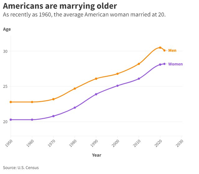 For a long time in America, a relationship was a financial necessity for women. Most women didn’t work or go to college, welfare programs as we know them today didn’t exist and ladies NEEDED men to support them and their children. Today? Being married to a man is a take-it-or-leave-it proposition for women. More women go to college than men, they make their own money, it’s no longer taboo to have sex outside of marriage and even if ladies have kids on their own, they’ll still be able to make it via child support or government programs. On top of this, even the women who want to get married are doing it later than ever: