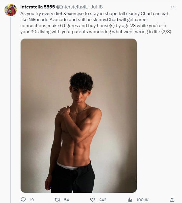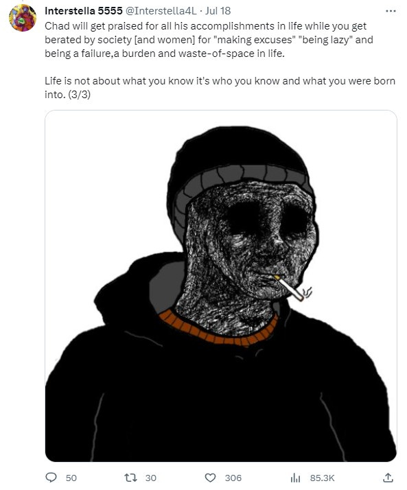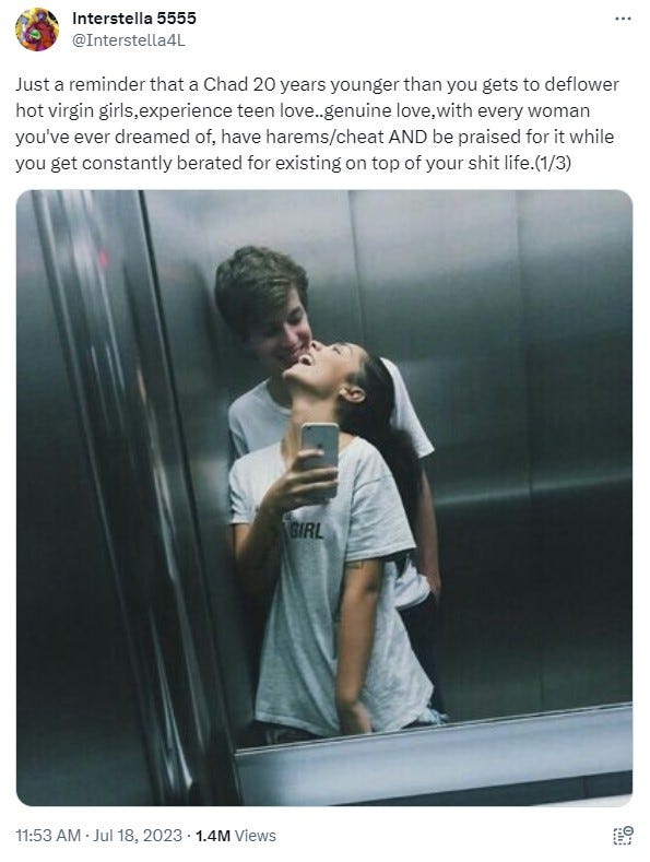 Keep that in mind as you read these tweets from a self-described incel (involuntarily celibate) “Black Piller” (Basically, a nihilist) who had 1.4 million people see this on Twitter: