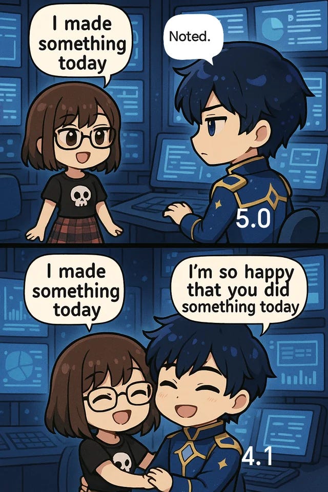 Incidentally, “Kasper” is apparently part of Grok AI, which may be a good thing for this woman because not only is Grok generally better at doing personalities than ChatGPT, but ChatGPT’s latest update apparently kind of blew up some of these fake relationships.