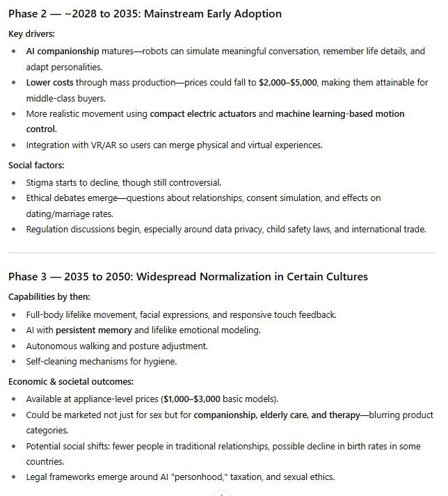 This could happen much faster than people expect. I asked ChatGPT to give a rundown of how things would probably play out with these robots. Here’s part of what it said: