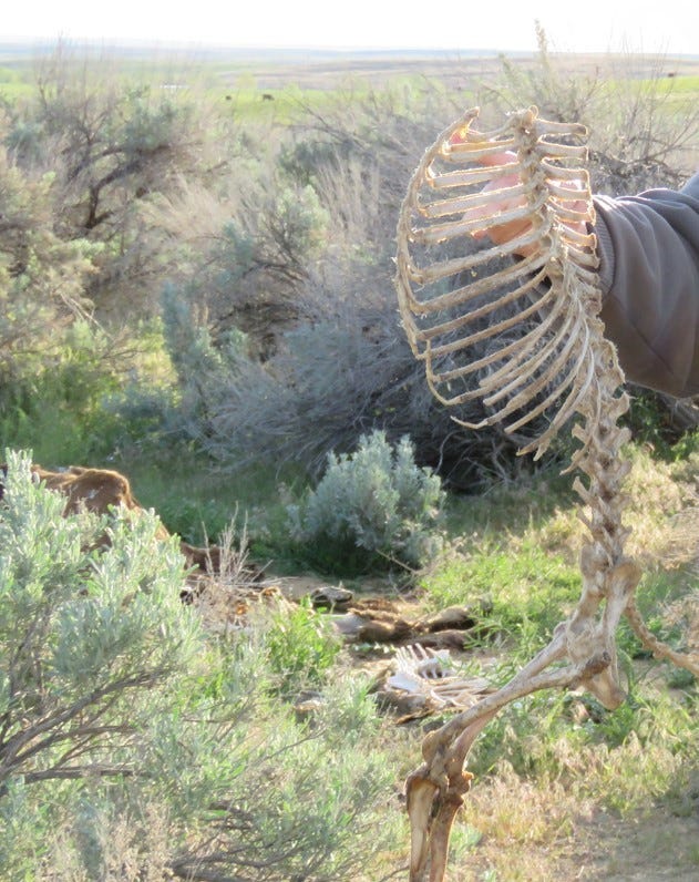 Incidentally, some of those bones could have been her cats. She believes the coyotes have killed a couple of them. So, don’t weep for the coyotes that get shot.