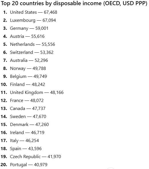 For example, I asked ChatGPT to compare the nations with the highest levels of disposable income. Guess what? It wasn’t one of those “socialist” countries that came out on top.
