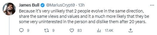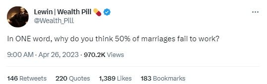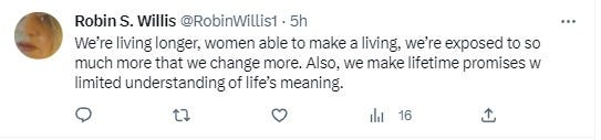 This is an interesting question, right? Not just because there is a lot of debate about what the divorce rate actually is (most estimates put it between 39% and 50% with that percentage going up even higher if one of the participants has been married previously), but because almost everyone has their own take on what’s happening. For example, let’s look at a tweet that went viral on Twitter and some of the responses:
