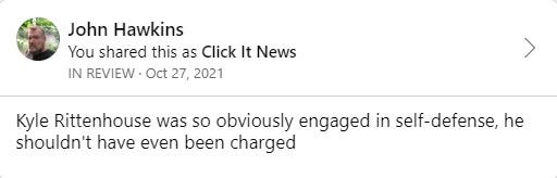 I am sickened and saddened that political persecution has risen its ugly head in America. If you are on the wrong side of politics one faction alone is responsible for self-defense and actual peaceful protesting being a prosecutable offense. This is evil and it needs to be stopped. Kyle is a hero. He deserves a medal for the reasons behind his actions during that uncalled for riot, and for the magnificent way he handled himself while his own life was threatened. If he is judged anything but innocent it will be a travesty of justice.