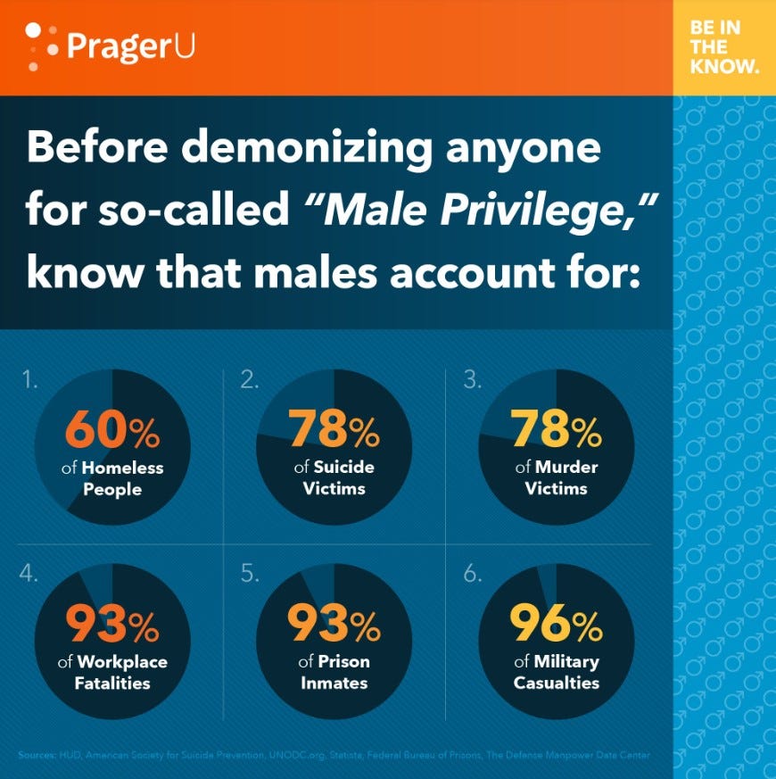 We could go on, but you get the idea. If you claim that we live in a “patriarchy,” you have to ignore an awful lot of inconvenient facts and statistics to do it.