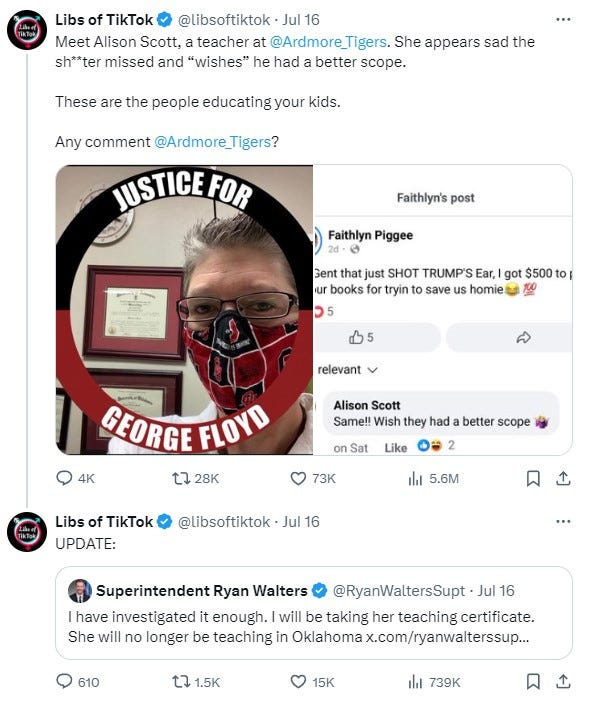 and you know, they CAN wish him dead if that floats their boats. who hasn't wished certain people dead or made jokes about it but to make a selfie of your disappointment that a shooter (probably a patsy) missed and then to broadcast that on social media??!! sorry that's beyond the pale.